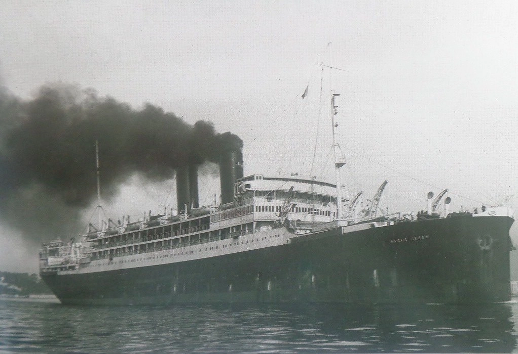 «Notre bateau est blanc et rouge. Son nom André Lebon (161,30 sur 18,80m). Etage supérieur : cabines de 2e classe : les nôtres. Ce sont d’étroites chambrettes au plancher et au plafond en fer, aux parois en bois. Chacun a sa lucarne. C’est une vitre très épaisse et ronde, large juste assez pour y passer la tête : on l’ouvre et on la ferme au moyen de deux rivets. Quand il pleut ou il vente, on la tient rigoureusement fermée : une vague suffirait à inonder la cabine… Nous sommes seuls, les trois dans une cabine à cinq places. On y dort mal, parce qu’il fait une chaleur d’enfer. Même maman aurait trop chaud…» (1er mars 1936)