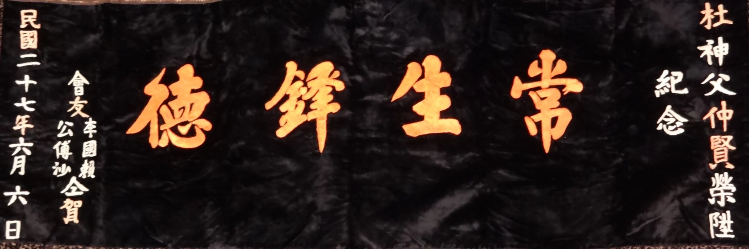 C’est le 7 juillet 1938 que Maurice Tornay célèbre sa première messe solennelle à Siao Weisi. Pour l’occasion les missionnaires des alentours sont tous venus. De cette fête, il reste le ts’ai ou inscription honorifique qui était suspendue à la galerie de la mission : «Au Père Tornay, en souvenir de sa glorieuse promotion : longue vie, vertu éminente. Ses vieux amis, Melly, Coquoz, Lattion, Duc, Rouiller, Chappelet, qui le félicitent d’un cœur unanime. Le six du sixième mois de l’an vingt-sept de la République chinoise.»