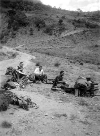 «Enfin nous sommes arrivés hier soir. Et personne n’était là pour nous recevoir. Nous avons dû commencer par enfoncer la porte… C’est que les missionnaires Melly et Coquoz avaient dû fuir, devant les communistes… Dans un village où nous avons passé il y a 4 jours, ils avaient si bien pillé, nous ne trouvions rien ni pour nous, ni pour les bêtes ; et puis deux demoiselles protestantes y tenaient une mission ; n’ayant pu saisir que leur domestique, ils l’ont brûlé à petit feu ! il n’était pas encore mort à notre arrivée… Quant aux missionnaires, ils aiment à les capturer, espérant les rendre contre de fortes rançons.» (Weisi, 9 mai 1936) Mise au parfum des conditions de vie en mission, après 3 mois de voyage.