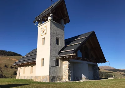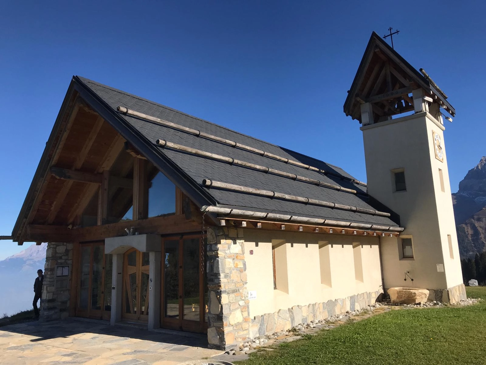 Chapelle à Champoussin La chapelle de Champoussin a été bénie et inaugurée le 20 juillet 1997. Elle est placée sous la protection du Bienheureux Maurice Tornay. Les vitraux représentent le chanoine Tornay, la colombe de la paix et les évocations des quatre saisons.